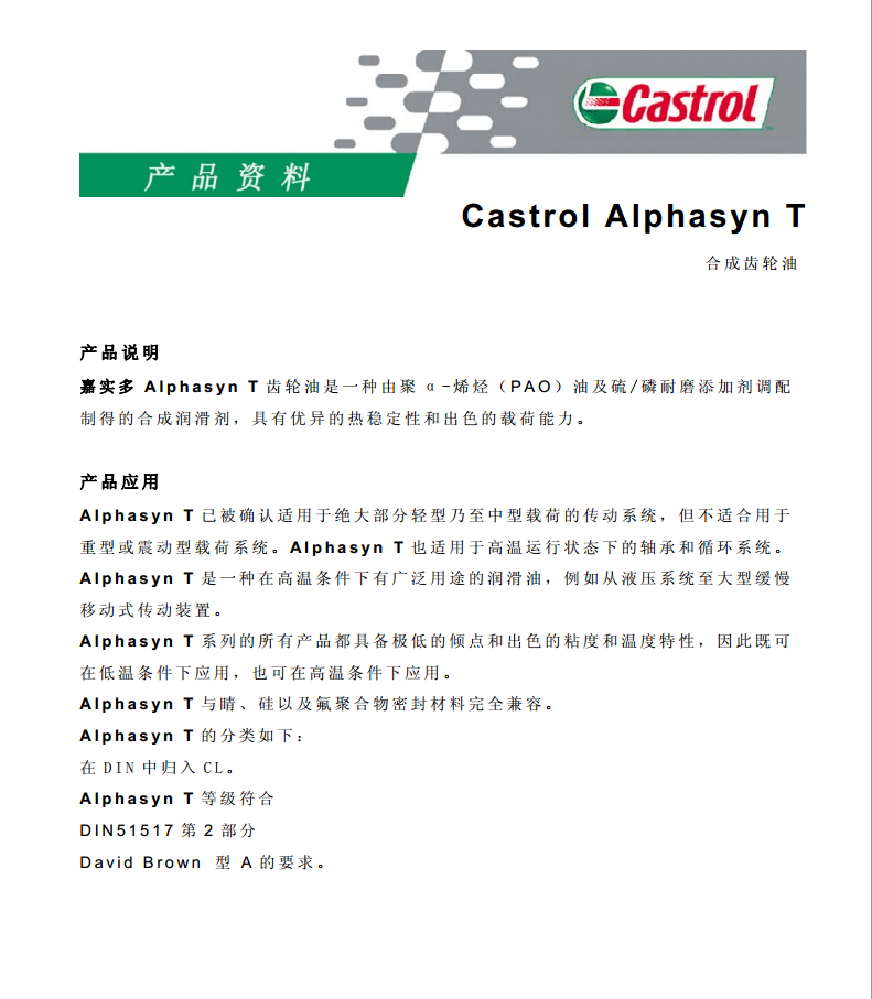 嘉實多合成齒輪油 Castrol Alphasyn T 32 46 68 100詳細說明?。g覽1426次)